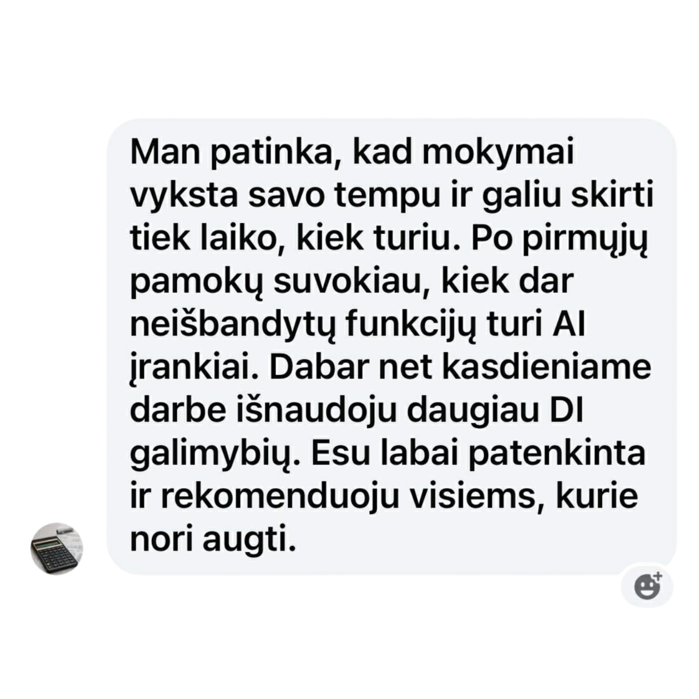 Padedame suprasti, kaip DI įrankiai gali padidinti tavo produktyvumą, automatizuoti pasikartojančius procesus ir net sukurti naujus produktus ar paslaugas.