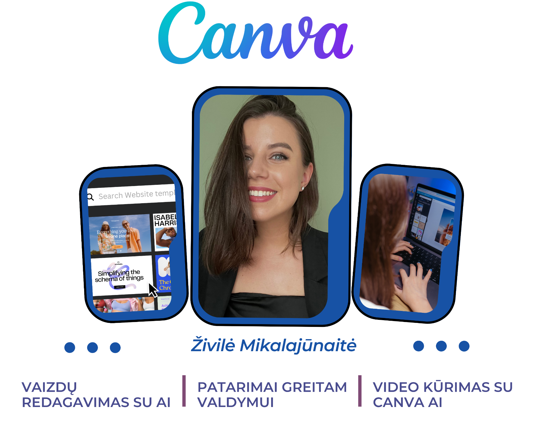 Per pastaruosius metus vedžiau Canva mokymus daugiau nei 300 dalyvių, padėdama jiems atrasti, kad profesionalus dizainas gali būti paprastas ir greitas.